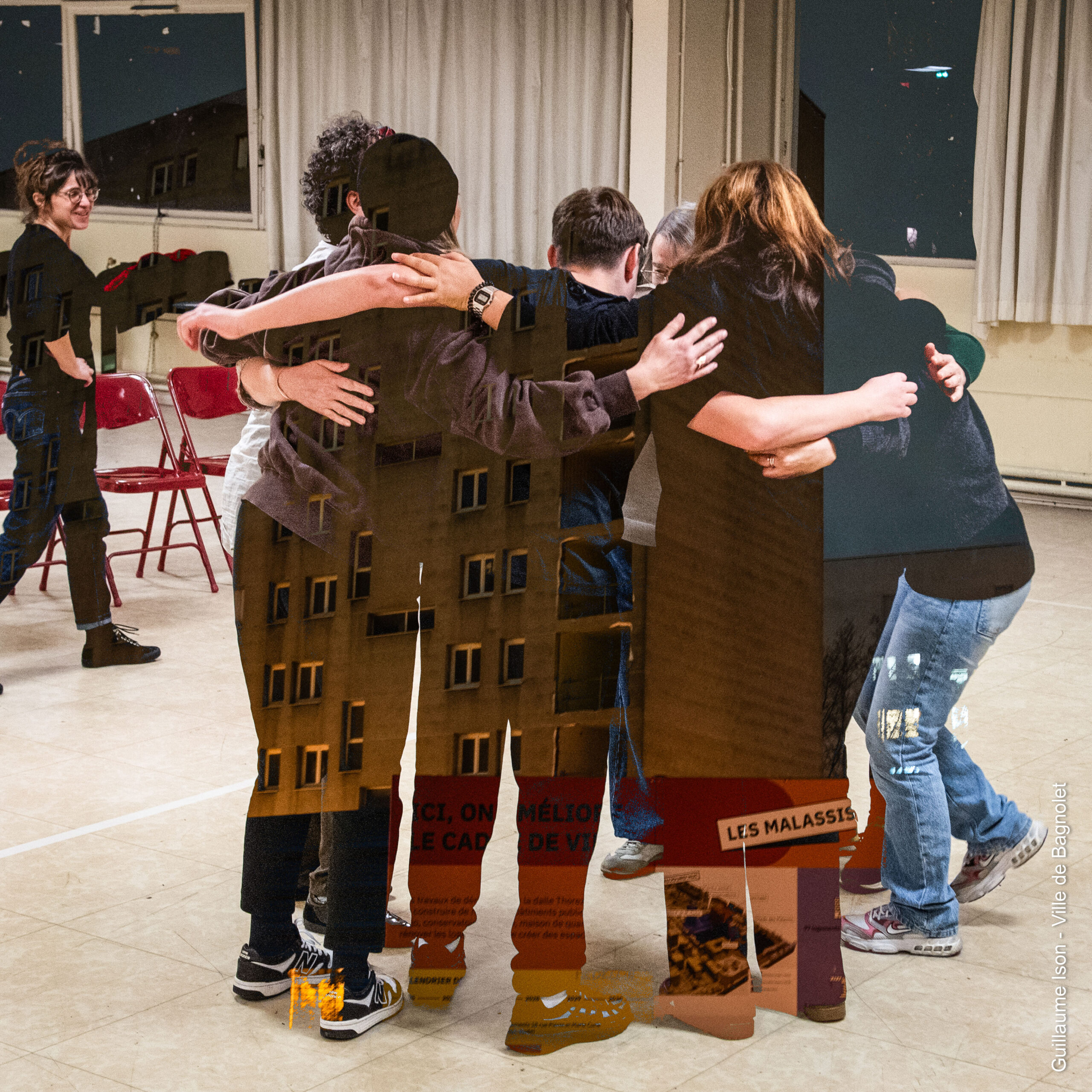 Nourris par trois saisons sur le territoire de Plaine Commune, en prise avec des enjeux de rénovation urbaine aux implications sociales et économiques ; aiguisés par nos lectures d’ouvrages plus techniques ; éveillés par les rencontres dans les établissements scolaires aux cœur des quartiers, avec des associations locales, des élus et des agents de la ville, des spectateurs, des habitants… nous avons construit ce vaste projet pour prendre une distance poétique avec ces grands projets d’urbanismes pensés à grande échelle et sur plusieurs années. Pour y trouver la place de l’émotion, de l’inquiétude, du plaisir, de l’espoir, du doute… de l’humain.