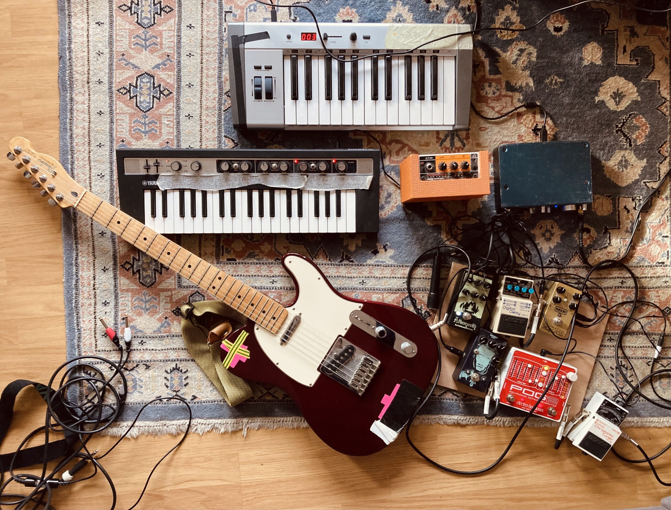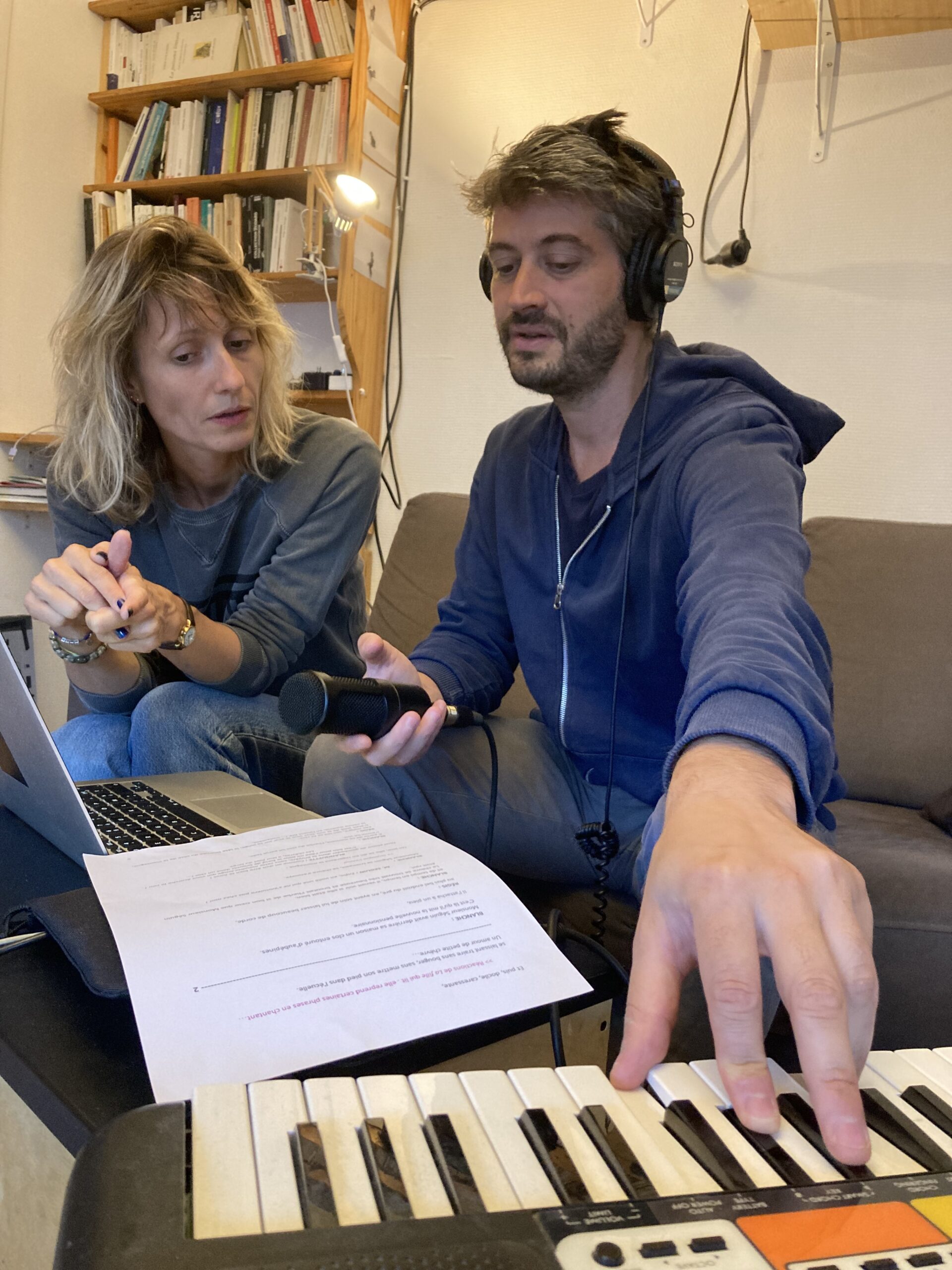 Avec la scénographe Angéline Croissant, nous imaginons un espace simple se prêtant à la musique live, et montable le matin de la représentation.